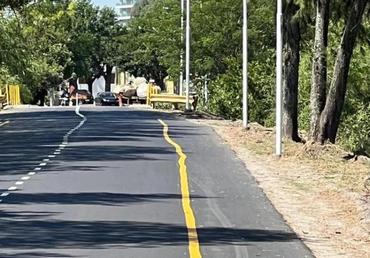 Insólita demarcación horizontal en el camino Héroes de Malvinas.