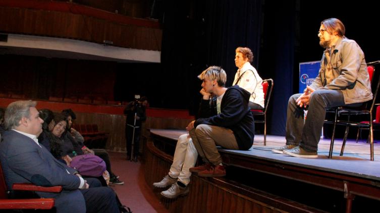 El ministro de Gobierno en la presentación del audiovisual “Del celuloide al celular”.