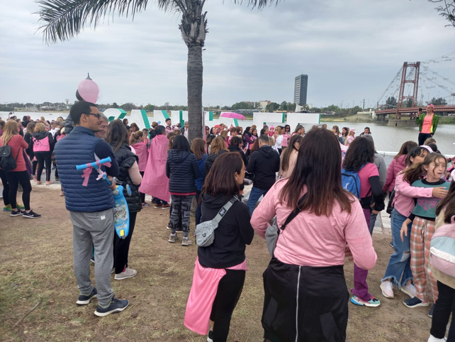 Desde las 16 marcharon por Boulevard hacia el Puente Colgante donde tienen previstas distintas actividades hasta las 19. Hubo clase de ritmos y sorteos. La convocatoria la realizó el grupo Chicas Pink, que reman desde el Club Azopardo en su bote Dragón.