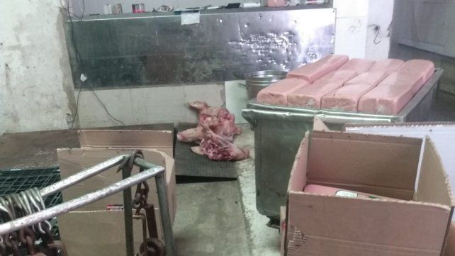 Había además embutidos sin cadena de frío y huesos de animales en el piso.