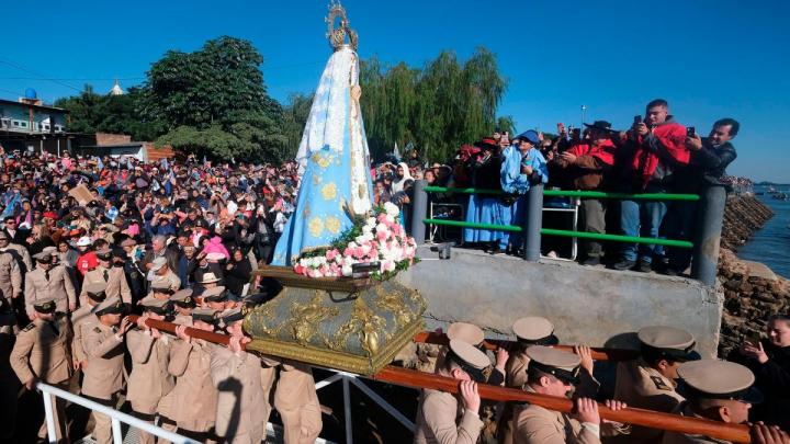 La procesión partió a las 10 desde la Basílica de Itatí, con la figura de la virgen llevada sobre los hombros de integrantes de la Prefectura Naval Argentina, hasta el río, y de allí en lancha.