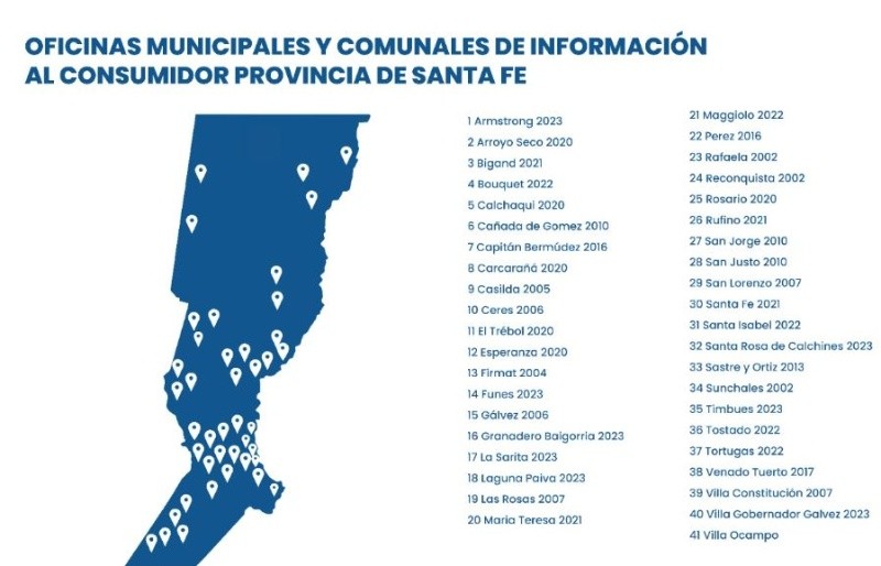 Hacia fines de 2019, Santa Fe contaba con 17 OMICs dedicadas a la atención al público, toma de reclamos y celebración de audiencias de conciliación.