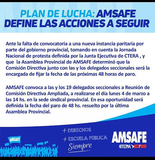 El gremio docente santafesino convocó a una reunión de la Comisión Directiva para el próximo lunes 4 de marzo donde le pondrá fecha a un nuevo paro de 48 horas.