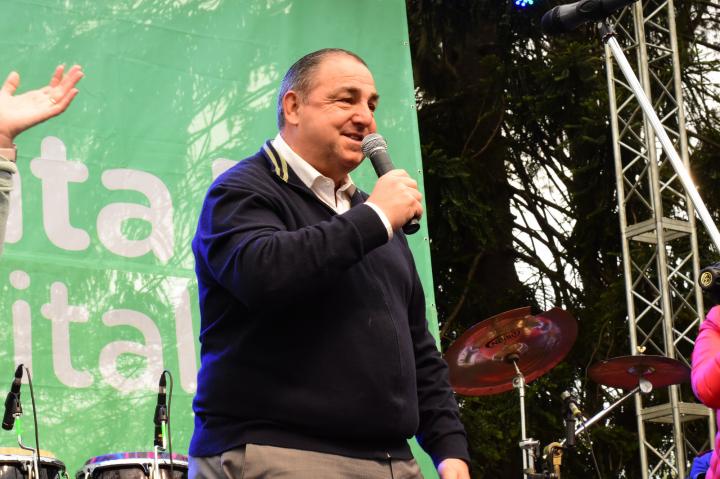 El intendente Juan Pablo Poletti recorrió el evento y con profundo agradecimiento dedicó unas palabras a los presentes desde el escenario.