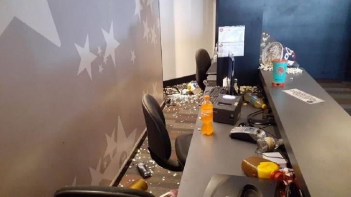 Destrozaron la boleteria y tiraron baldes de pochoclo.