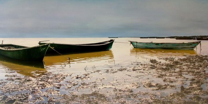 El rosarino Gabriel Schiavina entró al universo de la pintura de chico, de manera autodidacta. Su obsesión es el río Paraná, y representarlo de la manera más realista posible.