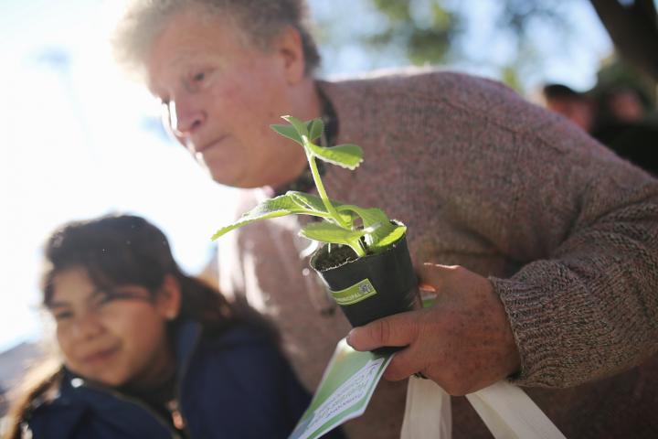 Allí, durante la mañana, se instalaron puestos en los que los vecinos fueron depositando materiales reciclables y secos, como papel, cartón, tetrapack y plásticos; a cambio recibieron plantines de aromáticas y bolsas reutilizables.