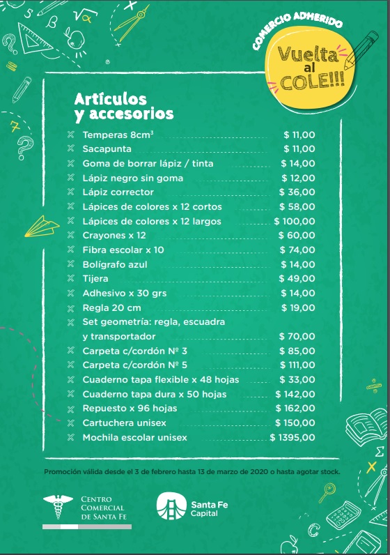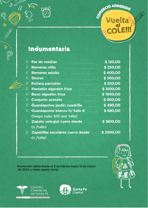 La Municipalidad, en un acuerdo con el Centro Comercial de Santa Fe y las asociaciones comerciales de las avenidas, lanzó este lunes la campaña Vuelta al Cole, que tiene como objetivo facilitarles a los ciudadanos la compra de artículos escolares para el comienzo del ciclo lectivo e incentivar el consumo en los comercios adheridos.