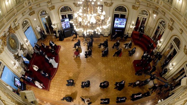 El mandatario nacional presentó la iniciativa junto al equipo de juristas que lo asesorará, a la ministra de Justicia, Marcela Losardo; al jefe de Gabinete, Santiago Cafiero; a la vicepresidenta de la Corte Suprema, Elena Highton; y al titular de la Cámara de Diputados, Sergio Massa, entre otros.