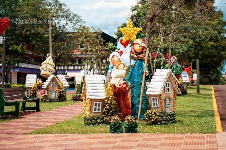 A 120 kilómetros de Posadas y sobre el río Paraná, los habitantes del pueblo se aseguran que cada diciembre el pueblo se transforme en una postal alpina con botellas de plástico recicladas.