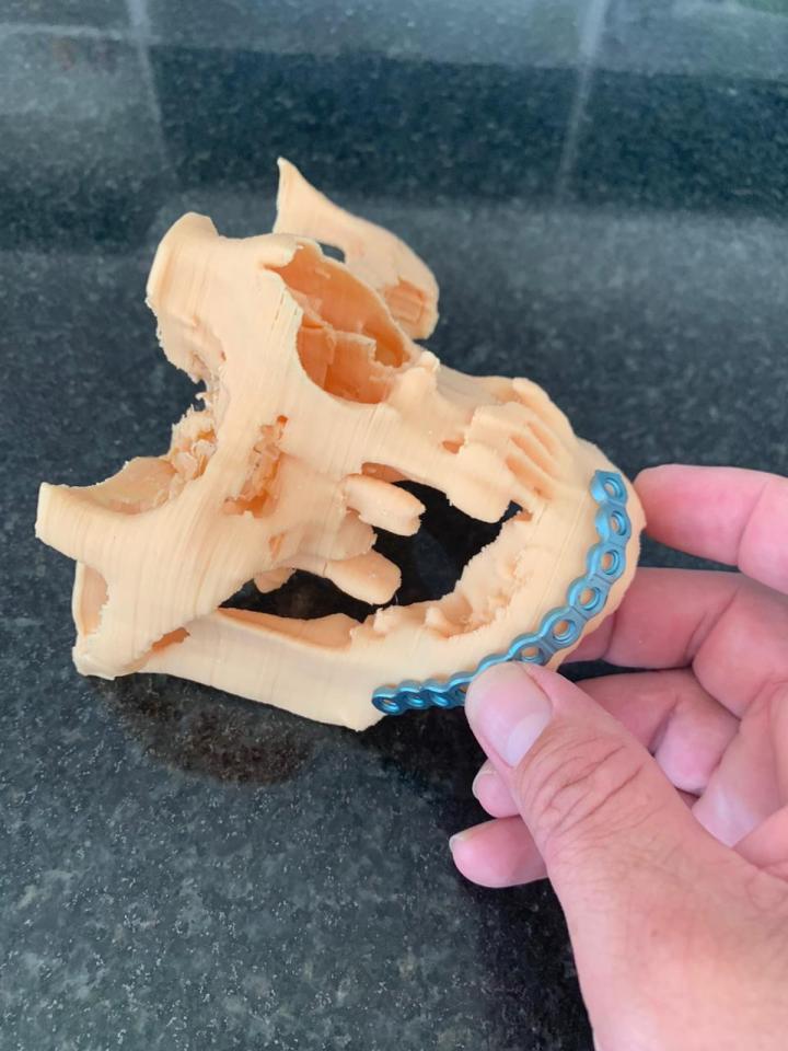 Se trató de una resección de tumor mandibular y reconstrucción inmediata con placa de titanio.