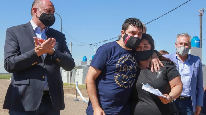 El gobernador Omar Perotti presidió este miércoles la entrega de llaves y títulos propietarios de viviendas a vecinos y vecinas de la localidad de Acebal, departamento Rosario.
