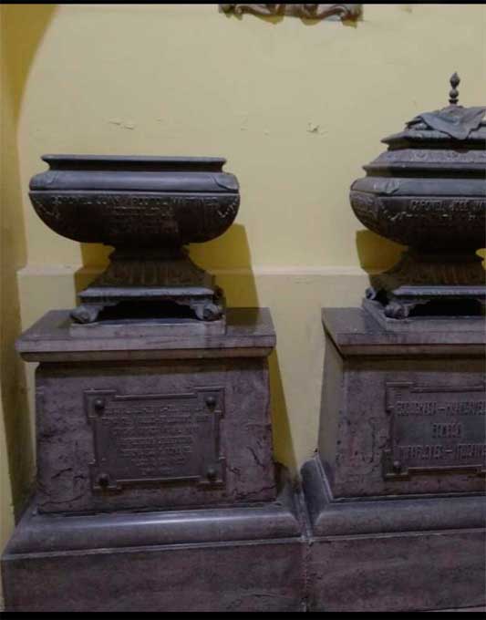 Se trata de una pesada tapa de bronce de una de las urnas donde se encuentran los restos óseos de granaderos, según precisó un allegado a la iglesia.