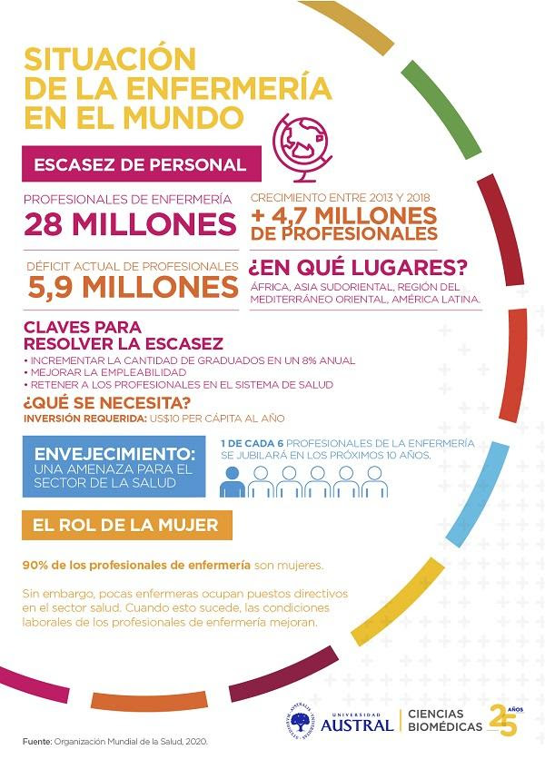 Según la OMS, el mundo se enfrenta a una escasez mundial de trabajadores sanitarios. Actualmente, son 5,9 millones los profesionales de Enfermería que se requiere formar para resolver dicha escasez.