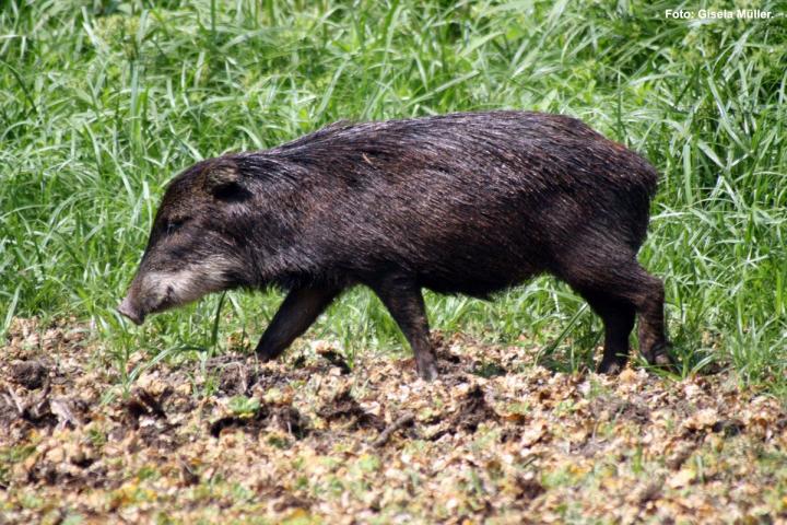Por su parte, el pecarí labiado (Tayassu pecari) es una de las especies de cerdos autóctonos de nuestra región. Posee hábitos marcadamente diurnos y crepusculares, y vive en comunidad.
