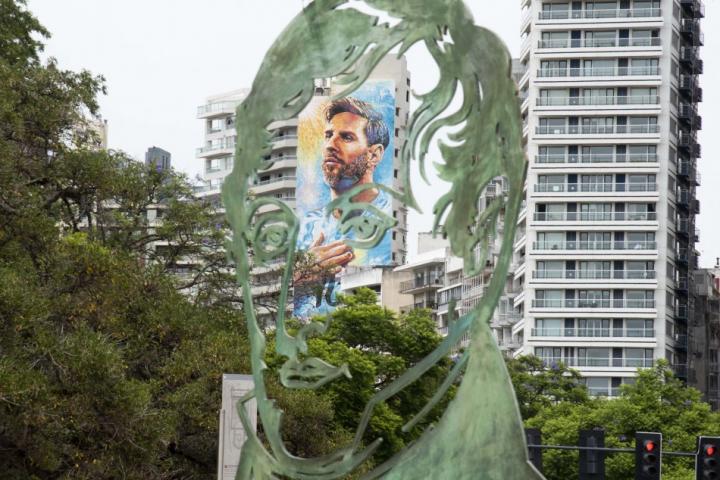 La primera obra del proyecto ya tiene repercusión a nivel mundial: se llevó a cabo en junio pasado en La Bajada, barrio de la infancia de Lionel Messi de la zona sur, y fue titulada «De otra galaxia y de mi barrio». Con una altura de 12 metros, fue pintado en el marco de la Copa América 2020 y reproducido por toda clase de medios en el plano nacional y mundial.