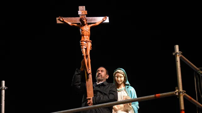 El Vía Crucis guiado por el padre Ignacio Peries volvió a desbordar las calles del barrio Rucci de la ciudad de Rosario.