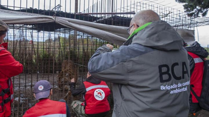 "Este trabajo es resultado de una línea investigativa iniciada en el 2020 por la Brigada de Control Ambiental (BCA) del Ministerio, relacionada con la caza ilegal de grandes felinos en Argentina, y se descubrió este predio en Balcarce donde se criaban animales para cotos de caza ilegales, entre los cuales se encontraban estos dos tigres de Bengala", informó el coordinador operativo del área de fauna de BCA, Emiliano Villegas.