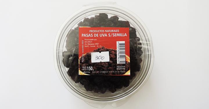 >> Denominación de venta: Pasas de Uva s/semilla