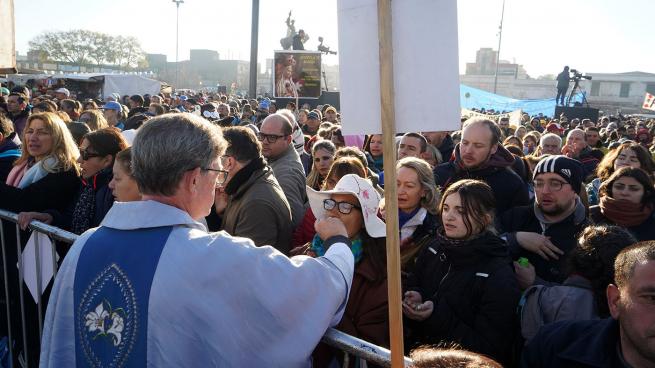 Ante cientos de miles de personas que se movilizaron desde el pasado sábado en la 49° Peregrinación Juvenil a Luján, García Cuerva dijo: "María de Luján, estamos en tus manos porque estamos desesperanzados y tristes, necesitamos recuperar la alegría y la esperanza".