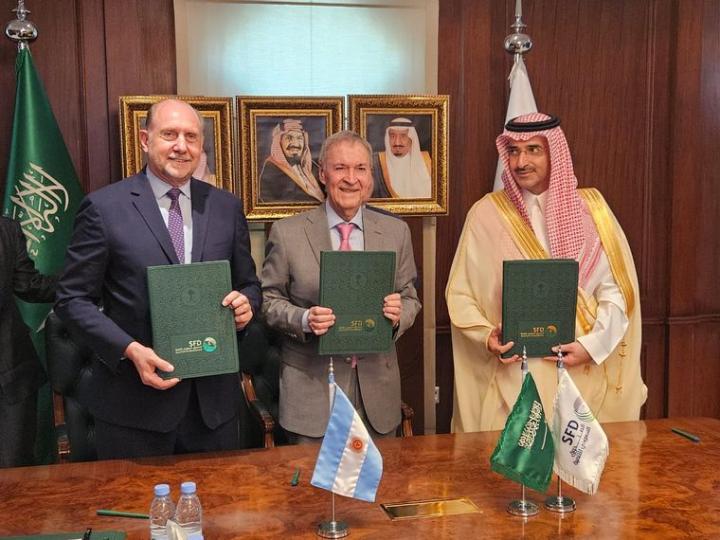 De la rúbrica, que se realizó este domingo en Riad, capital de Arabia Saudita, participaron también la vicegobernadora electa de Santa Fe, Gisela Scaglia, y el gobernador electo de Córdoba, Martín Llaryora.