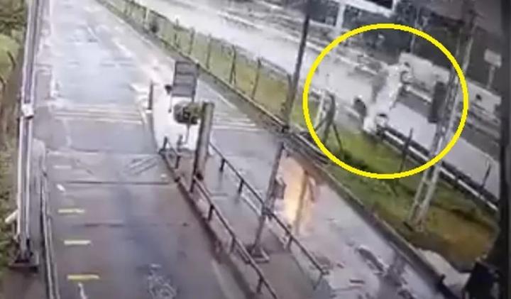 Las cámaras de seguridad de la zona captaron el momento del accidente. En las imágenes se ve cómo un auto Peugeot 208 blanco perdió el control, primero impactó contra el guardarraíl y luego contra la cabina del peaje.