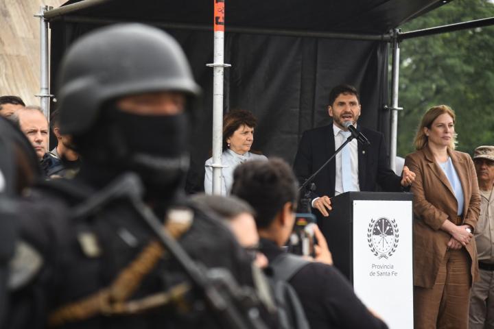 Con un acto que se realizó en la tarde de este lunes en el Monumento a la Bandera, ante la formación de efectivos de fuerzas de seguridad provinciales y nacionales, el gobernador Maximiliano Pullaro y la ministra de Seguridad de la Nación, Patricia Bullrich, pusieron en marcha una serie de acciones y medidas coordinadas para luchar contra el delito.