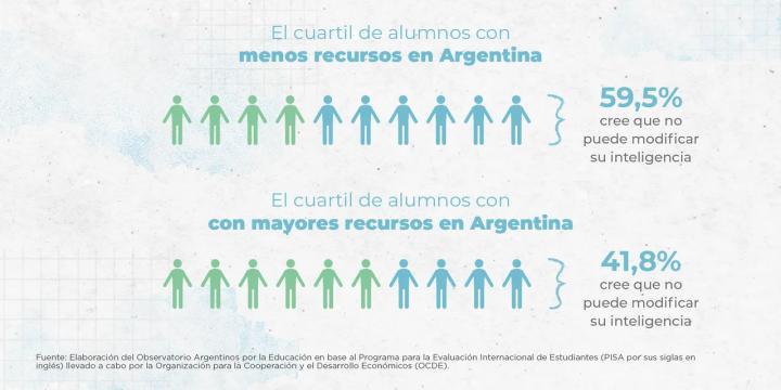 Con respecto a la motivación, el 51,7% de los estudiantes argentinos están de acuerdo o muy de acuerdo con la frase “Mi inteligencia es algo que uno no puede cambiar mucho”.