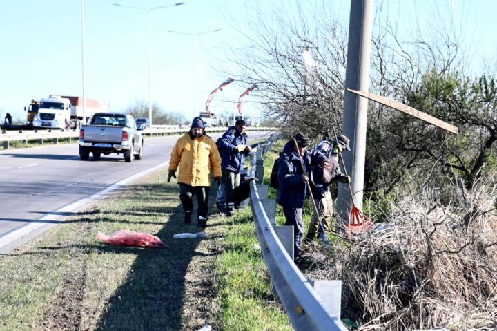 También se realizan trabajos de limpieza manual para recolectar basura diseminada en las banquinas.
