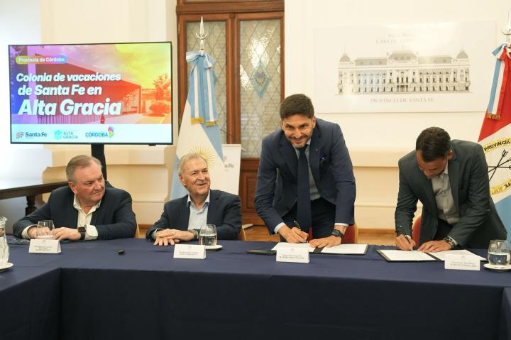 El gobernador de la Provincia, Maximiliano Pullaro, firmó el miércoles un convenio de recuperación y puesta en valor del predio de la Colonia de Vacaciones de Santa Fe en Alta Gracia.