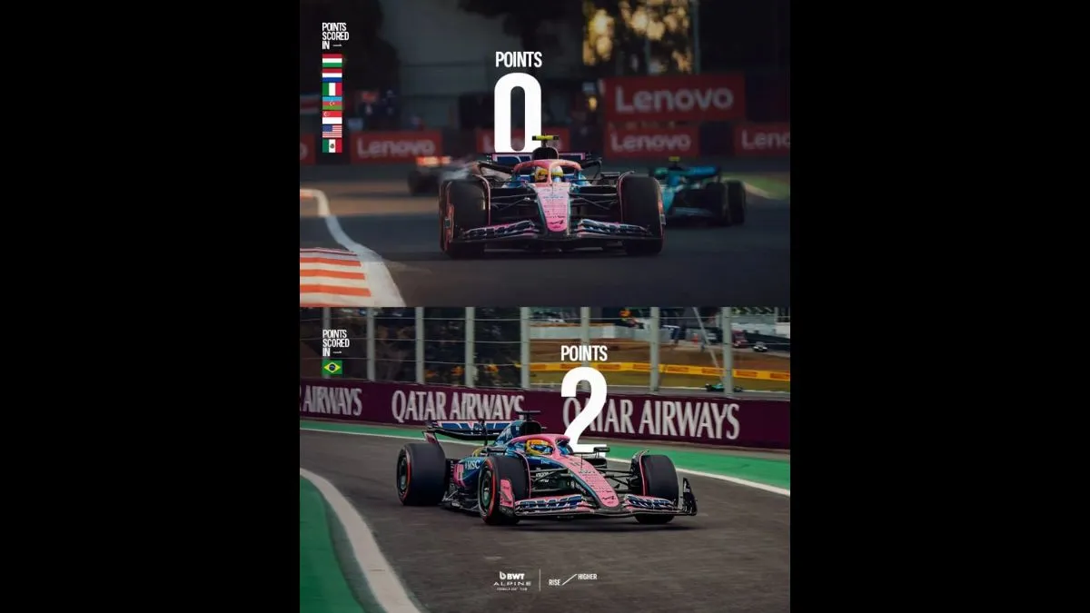 En la imagen de Gasly, colocaron la de Brasil, donde logró los dos puntos aludidos. El texto que acompañaba a la imagen rezaba: “Paso a paso. Aunque nuestro objetivo es 2026, no nos rendimos. Un pequeño botín de puntos para llevar de vuelta a la base y para las últimas tres fechas de la temporada”.