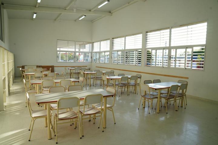 Las instalaciones incluyen: hall de ingreso, seis aulas, taller multipropósito, centro de recursos multimediales, preceptoría, SUM con depósito, núcleo sanitario y sector de gobierno (dirección, vicedirección, secretaría, sala docente, office y sanitarios), además de circulaciones que integran los distintos espacios.