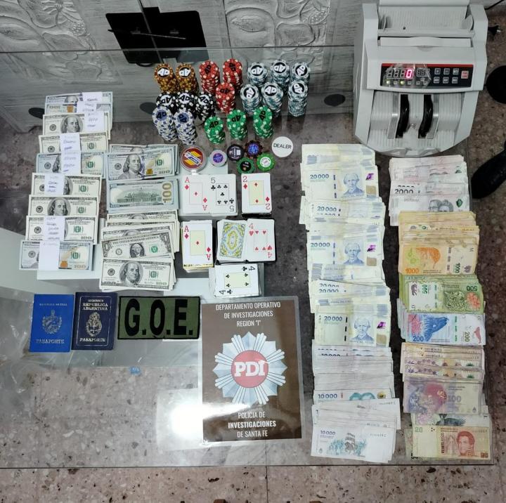 “Anoche se realizó un allanamiento en el lugar en el que había alrededor de 25 apostadores; se secuestraron mesas de juego de póker, dinero en efectivo (pesos y dólares), fichas y teléfonos celulares de los asistentes y de personas que estaban trabajando”.
