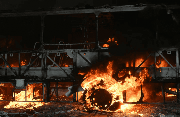 Tras la caída de Jiló, miembros de la organización criminal reaccionaron incendiando un colectivo y utilizando vehículos para bloquear distintas calles.