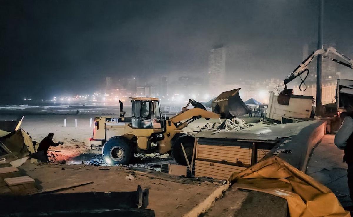 Desde la madrugada, con el uso de topadoras y bajo custodia policial, se desmantelaron más de 170 estructuras que funcionaban como puestos comerciales en un predio de aproximadamente 2.500 metros cuadrados.