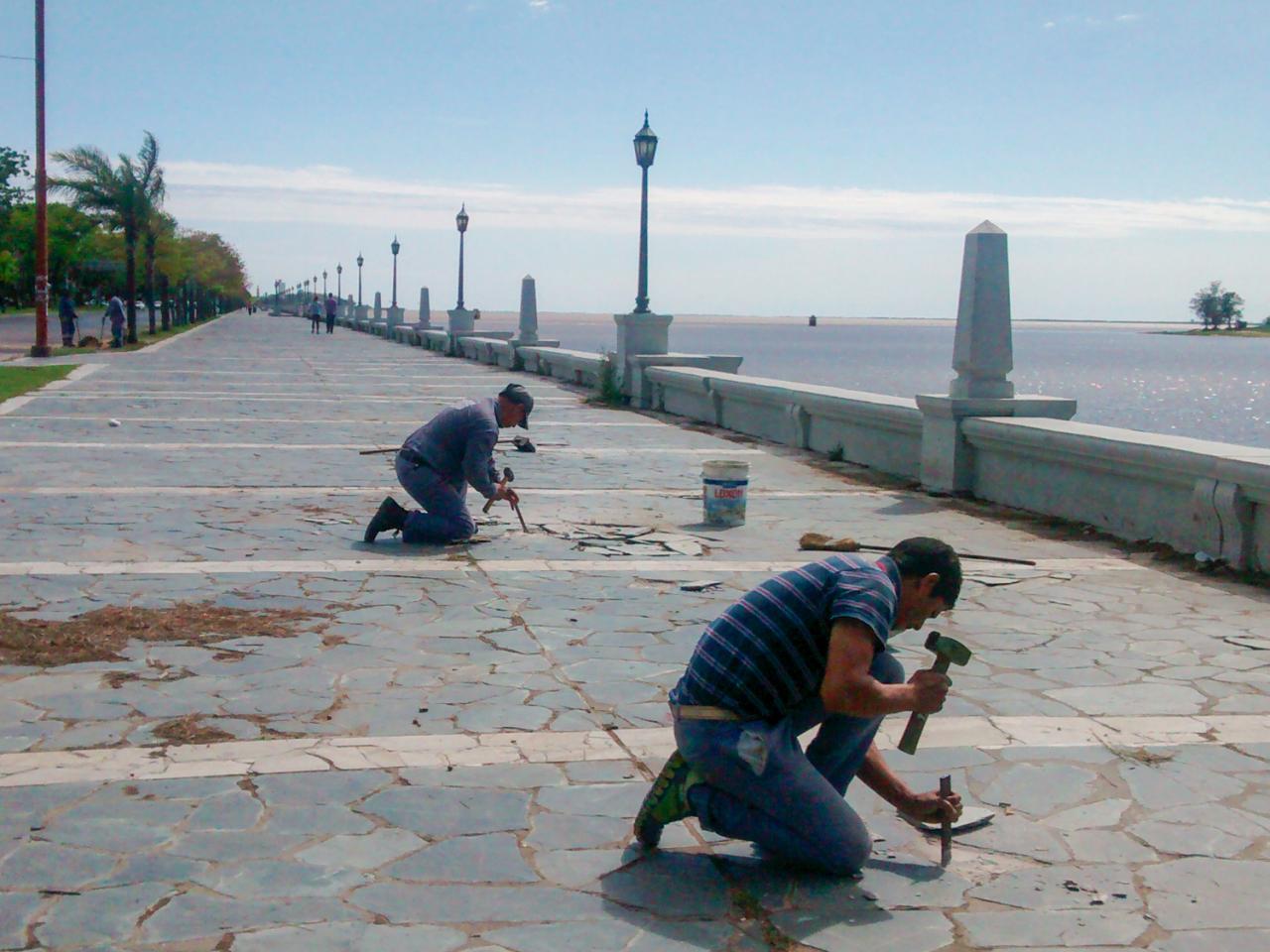 En el primer sector, personal municipal de la Secretaría de Obras Públicas está abocado a la confección de nuevas barandas para la berma de la costanera. Además, se trabaja en la reparación y recambio de lajas, al tiempo que se realizan obras de mampostería y el retirado de las partes dañadas.