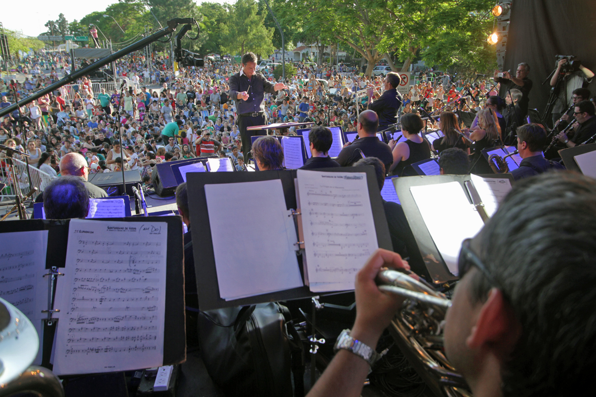 En el escenario, la Banda Sinfónica y el Coro Municipal “Ciudad de Santa Fe” brindaron un repertorio que incluyó composiciones de música de películas, y un segmento de canciones populares como “Santafesino de veras” y “Santafesina”, en las voces de las solistas del Coro Viviana Barrios y Gabriela Roldán, entre otros temas que le cantaron a la ciudad.