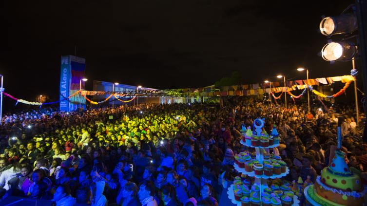 Con el grupo sobre el escenario llegó el momento más esperado por todos: el gran ritual de cumpleaños. Una decena de niños y niñas que cumplían un año, al igual que El Alero, y en representación de centenares, se acercaron con sus padres al escenario, soplaron las velitas y se les entregó un obsequio construido en el espacio.