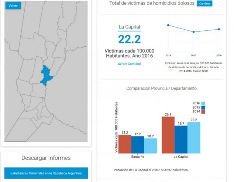 En líneas generales, entre 2015 y 2016 la tasa de homicidios cada 100 mil habitantes bajó en un 9,1 % en todo el país. En cantidad de víctimas, eso representa una disminución de 2.837 a 2.605, con un promedio de siete casos por día.